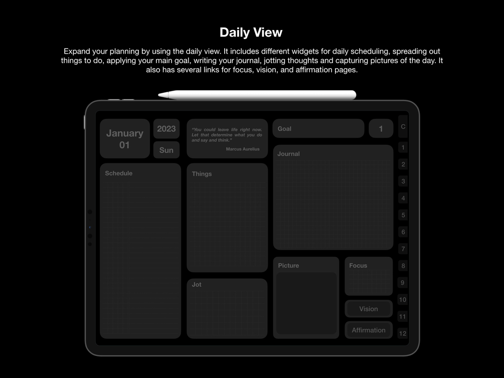 Want to plan in the dark? Do you want something straightforward? Do you want to immerse yourself with a feeling of writing on something real yet modern. Feeling stoic today? How about checking this planner inspired solely by widgets. Just a thing, turn off the lights.